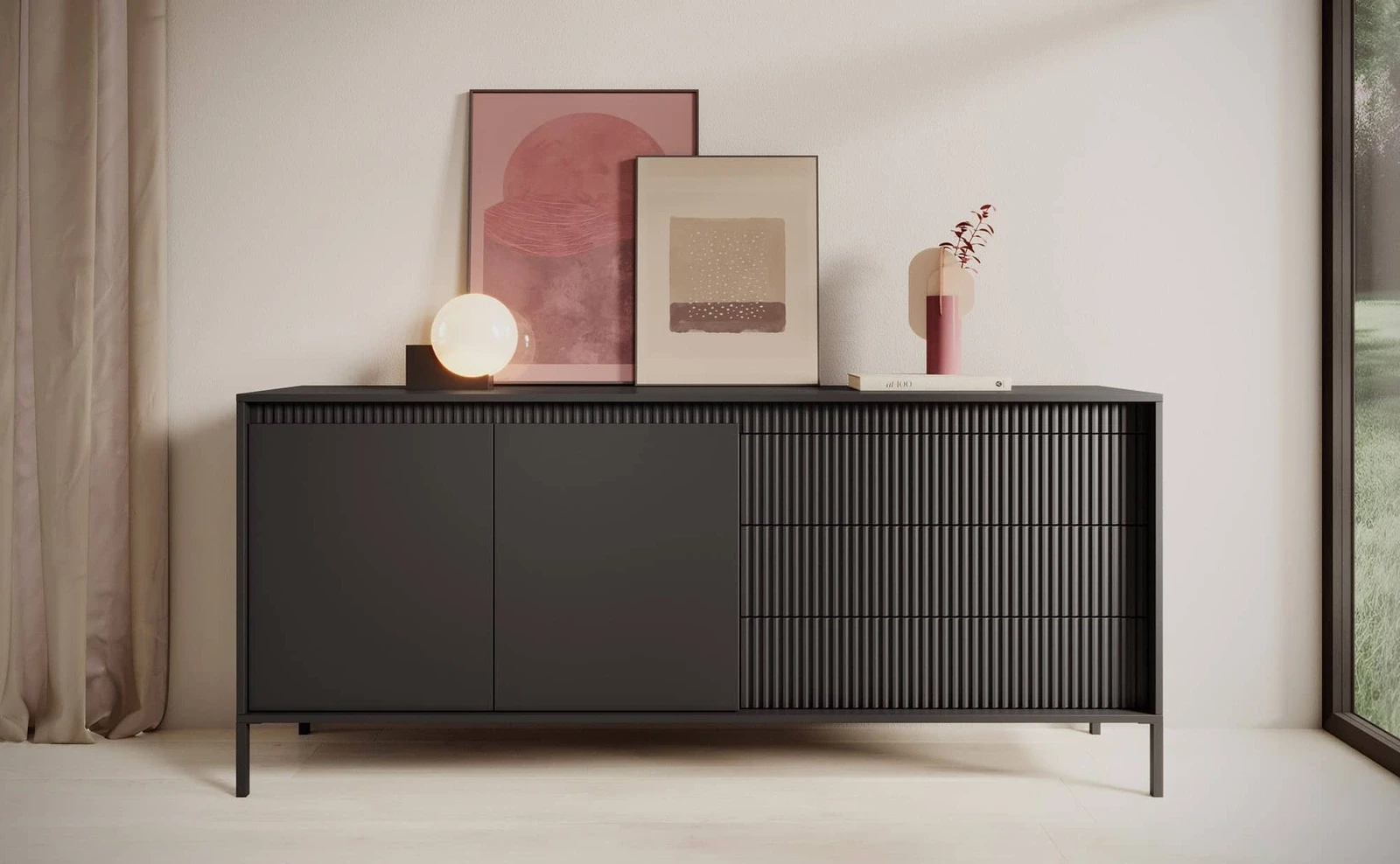 schlafzimmer kommode mit 163 cm breite mit rillenfront in schwarz matt, 6 schubladen – langon-167