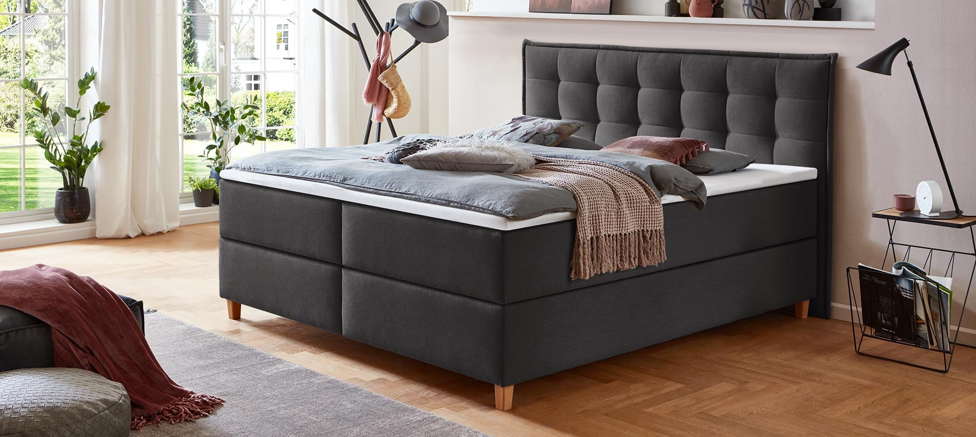 boxspringbett in grau traumhaft in szene setzen – möbel lenz