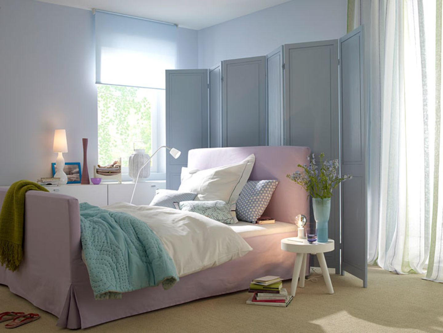 pastellfarbenes schlafzimmer